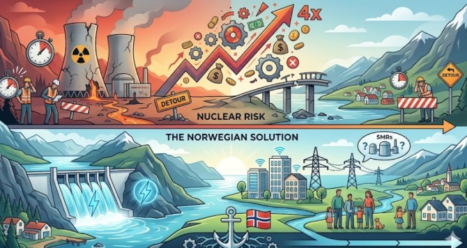 노르웨이 정부는 이처럼 유럽 전역에서 공통적으로 나타나는 '공기 지연→이자 비용 상승→공사비 폭등'의 악순환이 단순한 개별 국가의 문제가 아닌, 원전 산업의 체계적 위험이라고 진단했다. 대형 원전 건설이 국가 경제의 가시가 될 수 있다는 경고다.