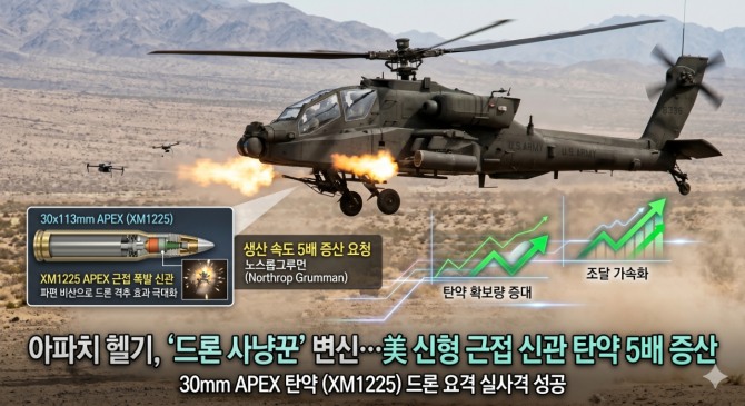 군사 전문가들은 "그동안 이스라엘 공군이 아파치를 드론 요격에 활용하며 쌓아온 실전 데이터를 미 육군이 공식 교리로 채택하고 전용 무기체계까지 대량 확보하기 시작했다"며 "고가의 미사일 대신 저렴한 기관포탄으로 드론을 격추하는 방식은 전장의 경제성을 크게 높일 것"이라고 분석했다.