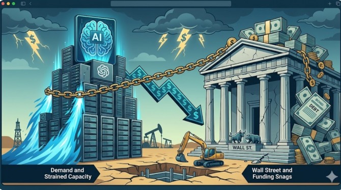 오라클의 데이터 센터 건설 지연은 HBM 등 AI 반도체 수요의 일시적 변동성을 키울 수 있다. WSJ과 모건스탠리 분석을 종합하면, 자금 조달 한계로 투자가 주춤할 경우 공급망 재편이 불가피하기 때문이다.
