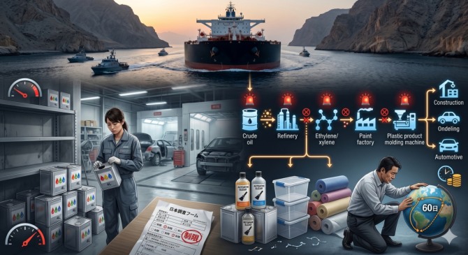 이미지 확대보기미국과 이란의 휴전 협의가 진행되는 와중에도 호르무즈 해협의 긴장이 지속되면서 일본 석유화학 산업에 '나프타 쇼크'가 현실화하고 있다. 일본 인터넷 방송 ABEMA 타임스가 25일(현지 시각) 보도한 내용에 따르면, 일본 정부는 필요한 양의 원유를 확보하고 있다고 밝히면서도 유통 과정의 '병목 현상'이 발생하고 있다고 설명했다. 그러나 현장에서는 플라스틱·도료·합성섬유·화장품 등의 기초 원료인 나프타 공급이 제한되면서 현장의 고통이 커지고 있다.