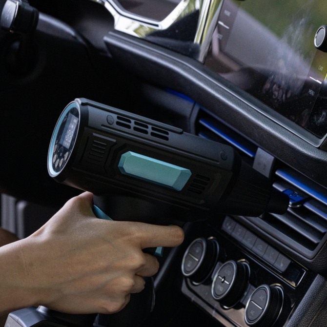 본체 하단에 배치된 배터리팩은 DC 전원과 더불어 USB-C 커넥터로도 충전할 수 있고, 외부 충전은 USB 포트로 5V 1A 출력을 지원한다. 지속적으로 사용할 때는 함께 제공되는 차량용 시거잭 케이블을 연결해 지속 전원으로 활용할 수 있다. 후면 디스플레이 하단에 배치된 5개의 버튼으로 전원 및 모드 변경, 공기압 조절 등이 가능하다.
