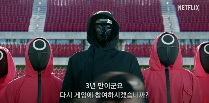 영상에서는 전력을 다해 마라톤 트랙을 뛰는 참가자들에 이어 바닥에 쓰러지는 이들이 속출하는 모습이 확인된다. 이윽고 등장한 익숙한 가면의 프론트맨과 붉은 옷의 진행요원들이 경기장을 가득 채우고 있다. 정면을 바라본 프론트맨은 마치 시청자들에게 말을 건네는 듯 한데, 그는 "3년 만이군요 다시 게임에 참여하시겠습니까?"라는 말로 시청자들의 기대를 한껏 높였다.