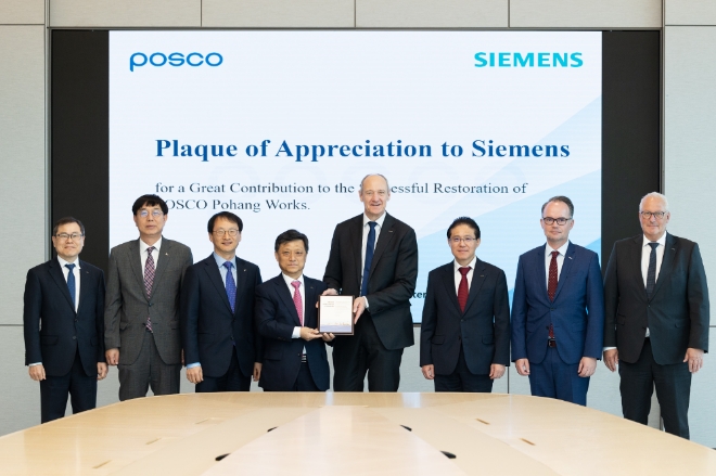 한편, 포스코는 지난 1월 냉천범람 침수 135일 만에 포항제철소를 완전 정상화 하는 과정에서 독일의 지멘스 및 일본의 TMEIC 등 해외 유수 공급사들의 지원을 받았다. 이번 지멘스와의 교류는 철강산업 경쟁력 제고와 글로벌 기업들과의 비즈니스 파트너십을 더욱 강화하는 계기가 될 것으로 기대하고 있다.