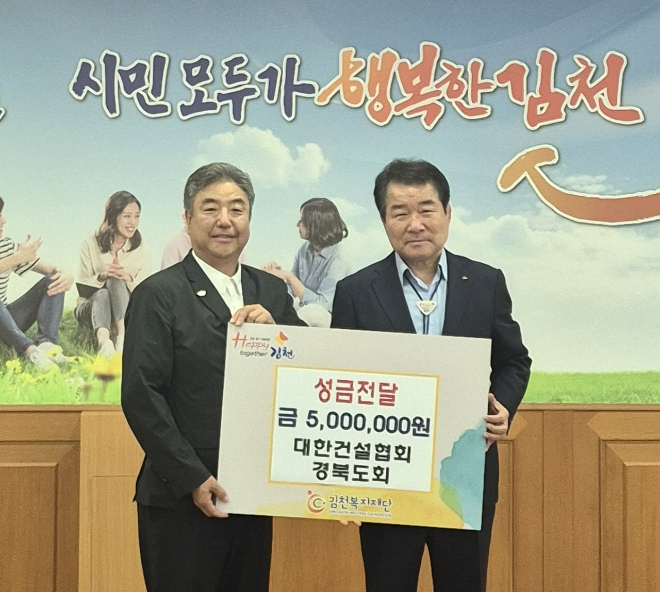 이미지 확대보기박 회장은 경북도회 회원들의 뜻을 모아 김천시 내에서 힘든 환경을 이겨내며 학업에 몰두하는 학생들을 위해 도움이 될 수 있도록 장학금을 전달하고, 간담회에서 김충섭 김천시장과 지역 건설산업의 위기로부터 극복을 위한 활성화 방안에 대하여 담화를 나누었다.