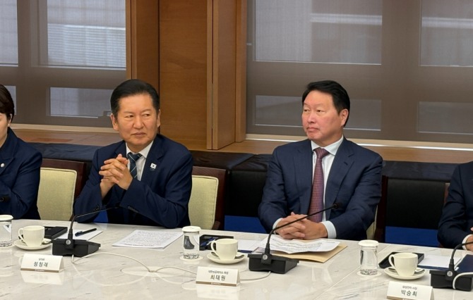 상의와 민주당은 이날 서울 중구 상의회관에서 경제 현안에 대한 정책간담회를 열었다. 민주당에서는 정청래 당대표와 한정애 정책위원회 의장 등이 참석했다. 경제계에서는 최 회장과 주요 그룹 사장, 지역별 상의 회장이 나왔다.