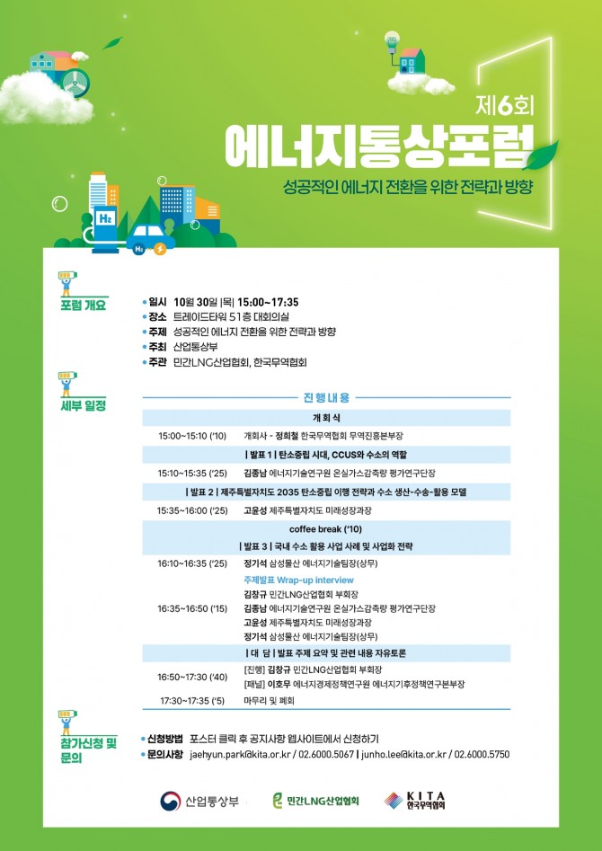 에너지통상포럼은 2024년 출범 이후 분기별 4회 개최되었으며, 올해부터는 상·하반기 정례 개최 체제로 전환되었다. 제6회 포럼은 탄소중립, 수소, LNG를 핵심 의제로 삼아 한국의 전략적 방향을 모색하는 중요한 무대가 될 전망이다. 참가 신청은 민간LNG산업협회(www.lngkorea.or.kr)와 한국무역협회(www.kita.net) 홈페이지에서 가능하며, 신청자 수에 따라 조기 마감될 수 있다.