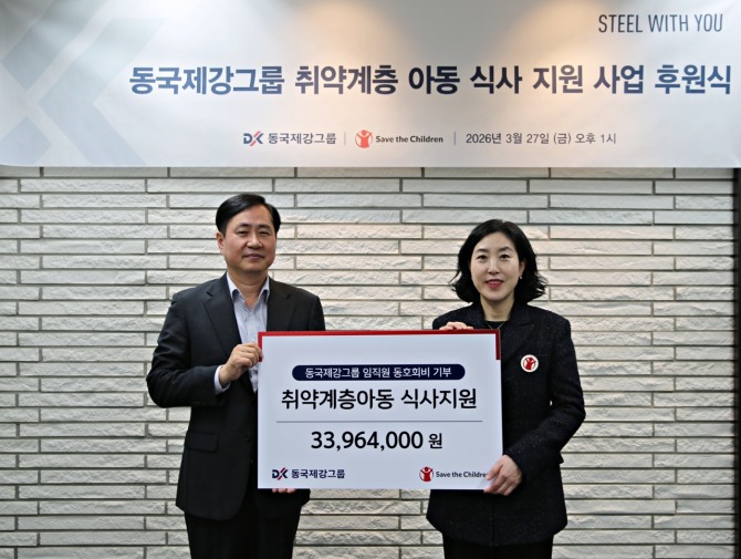 27일 동국제강그룹은 서울 중구 수하동 본사 페럼타워에서 ‘취약계층 아동 식사지원사업 후원식’을 열고 임직원 건강복지 이용료로 모은 3396만4000원을 세이브더칠드런에 전달했다. 이번 후원금은 성장기 아동의 신체 발달을 돕기 위한 결식아동 식사지원사업에 사용된다.