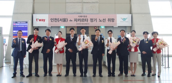 이날 행사에는 이상용 인천국제공항공사 신사업본부장, 안우진 티웨이항공 부대표, 유근태 티웨이항공 종합통제 총괄 임원, 황영조 티웨이항공 여객지원 담당 임원, 조병태 티웨이항공인천지점장과 관계자들이 참여하며 꽃다발 전달, 테이프 커팅식, 기념 촬영을 진행했다.