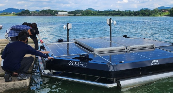 이미지 확대보기수자원공사는 대청댐과 낙동강 녹조 현장에 녹조 제거 ’에코로봇‘을 투입해 상시 모니터링과 녹조 제거 작업을 수행하고 있다고 29일 밝혔다.