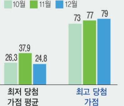 11월 수도권 당첨 가점 평균 24.8점…한 달 새 13점 하락