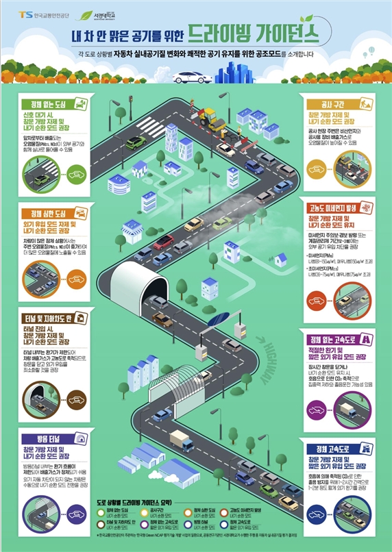 2일 한국교통안전공단(TS) 자동차안전연구원은 도심‧고속도로‧터널 등 다양한 도로환경별로 차량 공조 설정 모드에 대한 맞춤형 지침을 제시했다.