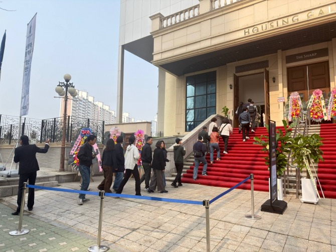 이날 오전 10시 견본주택 오픈시간에 찾아간 하우징 갤러리에는 이른 시간임에도 방문자들이 줄을 서며 입장을 기다리고 있었다.