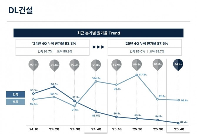 DL건설 관계자는 “실속을 다지는 계기로 삼고 원가율 하락을 통해 실적 턴어라운드를 하고 있다”며 “사업 포트폴리오도 안정적인 공공사업 위주로 집중하고 있다”고 말했다.