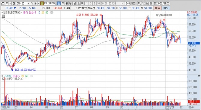 이미지 확대보기LS일렉트릭의 주가는 1일 오전 9시 30분 현재 전일보다 2900원(5.44%) 내린 5만400원에 거래되고 있습니다.
