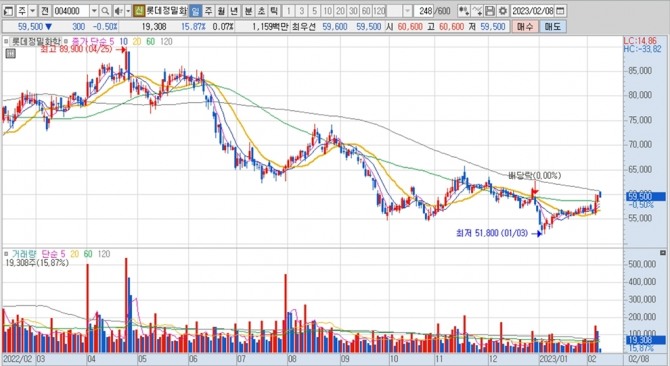 이미지 확대보기롯데정밀화학의 주가는 8일 오전 9시 30분 현재 전일보다 300원(0.50%) 내린 5만9500원에 거래되고 있습니다.