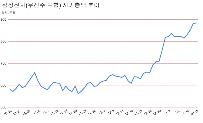 종가 기준 시가총액은 883조8019억 원이다. 이날 하루 동안 2조3679억 원 증가했다.