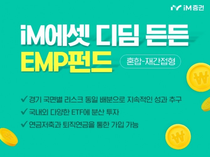 이미지 확대보기'iM에셋 디딤 든든 EMP 펀드'는 국내외 다양한 ETF 투자로 어떠한 경기 국면에서도 지속적이고 장기적인 수익 창출을 추구하며, 연금저축과 퇴직연금을 통해 가입이 가능하다.
