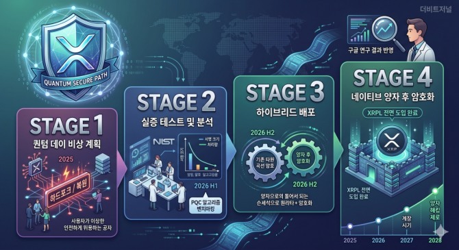 2단계(2026년 상반기)는 실증 단계로, 미국 국립표준기술연구소(NIST)가 권장하는 양자 후 암호화(PQC) 알고리즘을 실제 환경에서 테스트한다. 이어 3단계(2026년 하반기)에서는 기존 방식과 양자 보안 방식을 병행하는 하이브리드 배포가 이루어지며, 마지막 4단계(2028년)에 이르러 XRPL 전체에 네이티브 양자 후 암호화를 전면 도입한다는 계획이다.