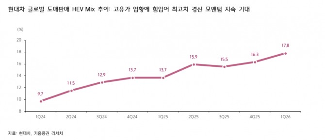 이미지 확대보기환율 변동성 확대로 인한 비용 인식, 시장금리 상승에 따른 수요 침체 가능성, 호르무즈 해협 봉쇄에 따른 원재료비 인상 가능성 등의 대외 변수가 현대차 어닝이 품목관세 충격으로부터 올해 회복할 가능성을 일부 훼손했기 때문으로 짚었다.