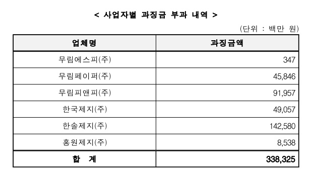 공정위는 한국제지와 홍원제지는 검찰에 고발했다.