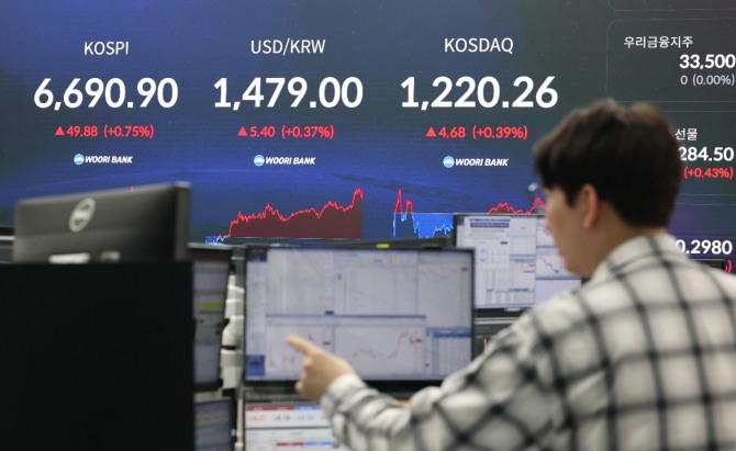 29일 한국거래소에 따르면, 코스피는 전 거래일보다 0.75%(49.88포인트) 상승한 6690.90으로 마감했다.