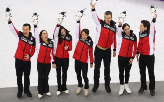 이미지 확대보기캐나다는 12일 강릉아이스아레나에서 열린 피겨 팀이벤트 남녀 싱글 프리스케이팅, 아이스댄스 프리댄스 결과 총점 73점을 기록해 금메달을 거머줬다.