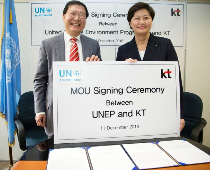 이미지 확대보기KT는 UNEP와 협약 체결을 통해 ▲UNEP 통합 환경 플랫폼 구축 지원 ▲ 미세먼지 측정망 선정 및 저감활동을 위한 지속적인 데이터 분석 협업 ▲전 세계 개발도상국 대상 유아, 노인 등 미세먼지에 민감한 계층을 위한 실시간 대응체계 마련 등을 협력한다.