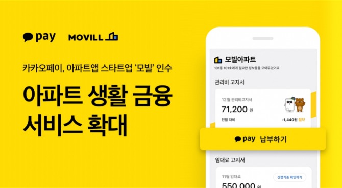 카카오페이와 모빌은 이날부터 본격적으로 카카오페이 플랫폼과 연계한 아파트 생활 금융 서비스 확대에 나선다.