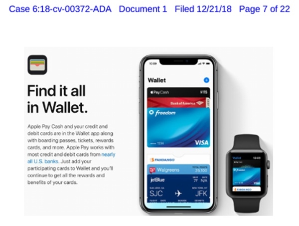 핀티브는 소장에서 이 특허에 대해 “핀티브가 지난 2014 년 9월 23일 특허받은 ‘모바일 지갑 및 관련 자격증명을 관리하는 시스템 및 방법(System and Method for Managing Mobile Wallet and its Related Credentials)’(미 특허 8,843,125)에 대한 모든 권리, 소유권 및 이권의 소유자”라고 소개돼 있다.