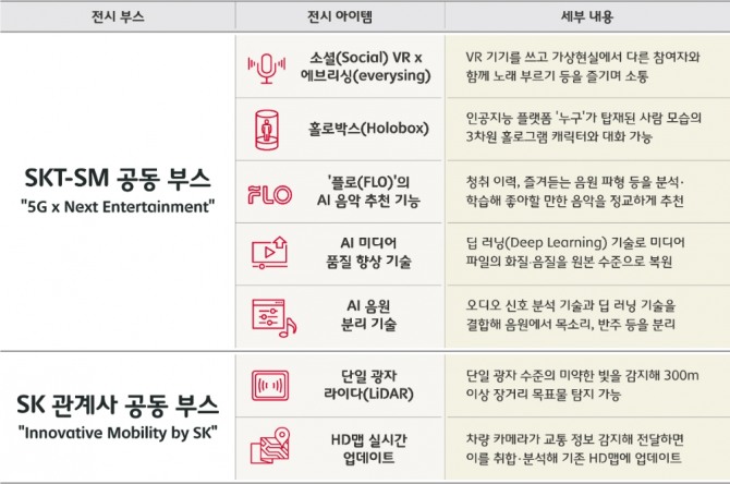 SK텔레콤은 SM엔터테인먼트와의 공동 전시 부스에서 ▲소셜 VR ▲홀로박스 ▲인공지능 미디어 기술 등을 선보인다.