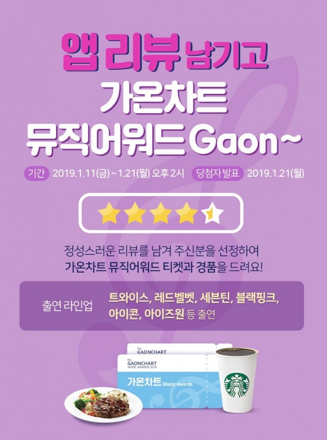 21일까지 오후 2시 응모자에 가온차트 뮤직어워드 티켓·TGIF 상품권 등