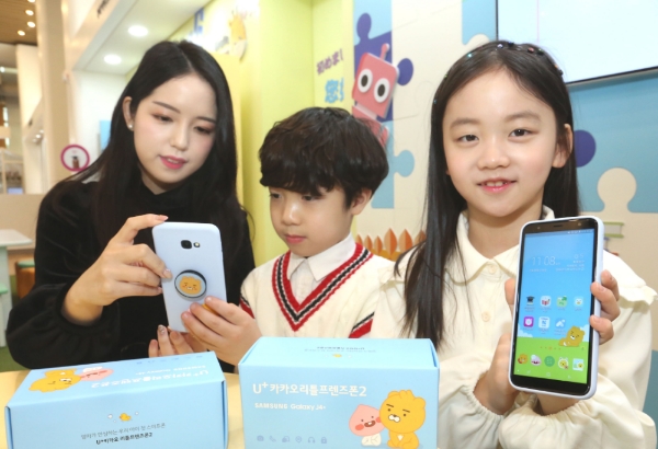 이미지 확대보기U+카카오리틀프렌즈폰2는 부모안심 앱과 카카오프렌즈의 캐릭터를 접목시켜 큰 인기를 끌었던 ‘카카오리틀프렌즈폰’의 후속작으로 삼성전자 ‘갤럭시J4+’의 안드로이드 성능을 기반으로 다양한 어린이용 우수 교육 콘텐츠를 담아 실용성을 대폭 향상시켰다.