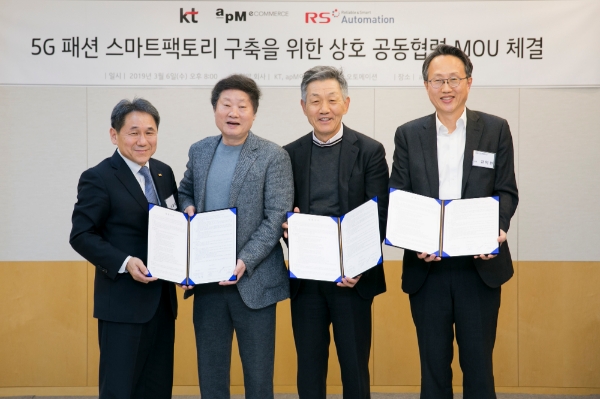 이미지 확대보기이들은 지난 6일 서울 동대문에 위치한 에이피엠그룹 본사에서 ‘KT-apM이커머스-알에스오토메이션, 5G 패션 스마트팩토리 구축을 위한 상호 공동협력 MOU 체결식’을 진행했다.