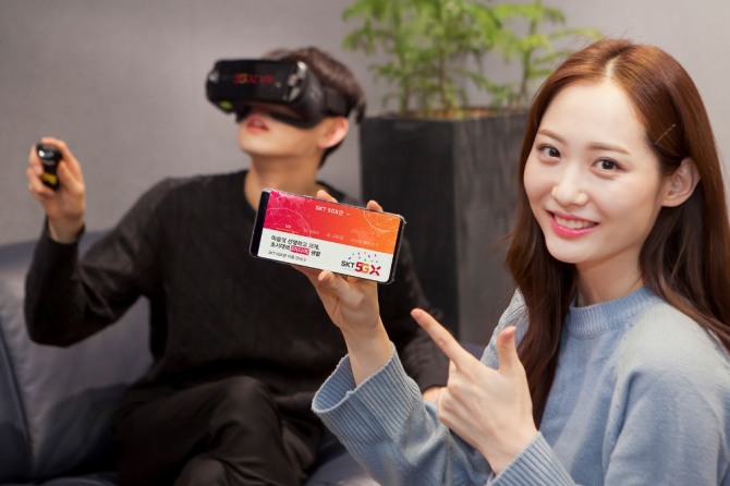 SK텔레콤의 5GX VR은 ▲‘고화질 360도 영상’ ▲‘소셜 VR’ ▲‘3면 스크린 영상’ 등을 제공한다. VR 콘텐츠 라인업도 다양하다. 우선 ‘아이돌 라디오’, ‘주간 아이돌’, ‘아프리카TV 댄서 프로젝트’ 등 다양한 아이돌 콘텐츠를 독점 선보인다. 스포츠에서는 프로야구를 중심으로 타사보다 ‘한발 빠른 생중계’, 경기장 전체를 보여 주는 ‘5GX 와이드 뷰’, ‘소셜 VR 생중계’ 등을 지원한다.
