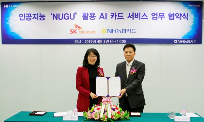 우선 두 회사는 인공지능 플랫폼인 NUGU를 통해 농협카드의 카드 상품 안내, 이벤트 등 범용 정보 서비스를 제공하며, 장기적으로 고객상담, 카드 승인 내역, 청구 금액 조회 등 개인화 서비스로 점차 확대해 제공할 계획이다.