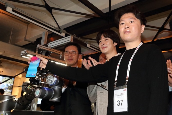 이미지 확대보기이날 오전 7시 KT도 서울 나인로드피제리아 강남점에서 '갤럭시S10 5G' 출시 기념 파티를 열었다. 이날 행사에는 KT 이용자 100여 명과 영화배우 이제훈씨가 참석했다.