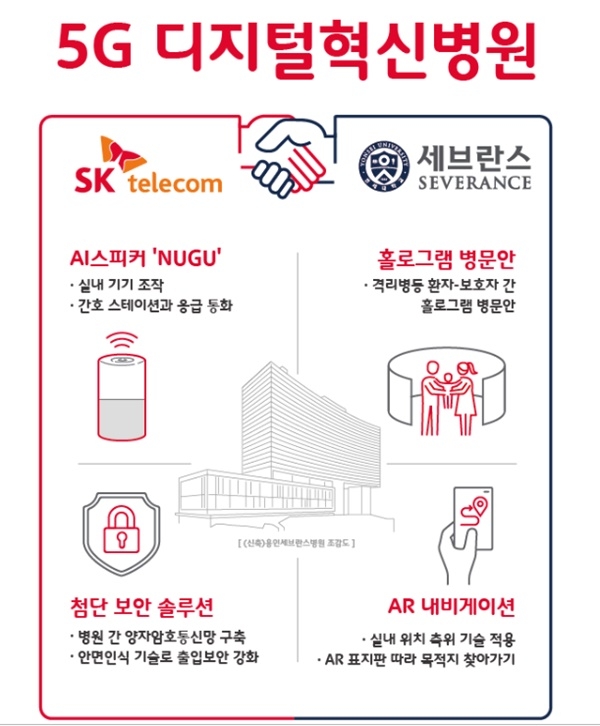 이미지 확대보기SK텔레콤과 연세의료원은 ‘5G 디지털 혁신병원’ 구축으로 환자와 보호자의 편의성을 높이고 의사와 간호사의 업무 부담을 경감해 의료 서비스의 질이 대폭 향상될 것으로 기대했다.