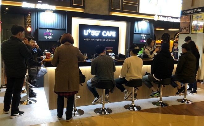 ‘U+5G CAFÉ’는 외관만 보면 마치 커피 바에 온 것처럼 꾸며져 있어 친근감을 높인 것이 특징이다. 커피 메뉴를 주문하듯 원하는 5G 메뉴를 주문하면 서비스를 체험할 수 있다.