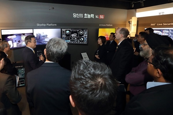 이미지 확대보기APAC 5G 최고경영자 회의 후 글로벌 기업 참석자들 40여 명은 29일 오후 KT 과천 INS운용센터의 5G 미래사업 체험관 ‘퓨처인(FUTURE-IN)’을 방문, 세계 최초 상용화를 주도한 KT의 다양한 5G 서비스를 경험하는 시간을 가졌다. 특히 유럽, 일본, 싱가포르 등에서 온 해외 사업자들은 KT가 5G를 B2B에 적용한 스마트팩토리의 360도 CCTV, AR 서포터, 협동로봇, 기가아이즈(GiGAeyes), 머신비전 등에 대해 큰 관심을 보였다.