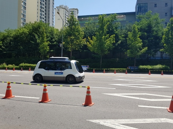 체험 차량에 동승한 안내원은 “셔틀에 부착된 센서들이 외부 차량, 신호, 사물들을 감지해 자동으로 감속, 정지, 방향 전환 등 자동으로 운전하고 있다”고 설명했다. 아무도 운전하는 사람이 없었지만, 차량은 부드럽게 직진했다. 같이 탄 승객들이 '우와'하며 탄성을 지렀다. 이날 차량 운행 시속은 25km로 제한돼 있었는데, 실제 차량 속도는 8km에서 10 km 정도로 유지됐다. '차도를 달린다'고 하기에는 민망한 속도였지만, 그래도 아무도 제어하지 않았는데도 차량이 움직이는 것이 신기했다. 신호등 앞에 다다르차 차는 저절로 멈춰섰고, 방향을 돌려 유턴하기 위해 차체를 틀었다. 그 과정에서 탑승객들 상체가 숙여질 정도로 제동이 걸렸다. 기자 맞은 편에서 아이와 함께 탄 남자 승객은 "승차감에 문제가 있는 것 아니냐"면서 걱정스럽게 질문하기도 했다. 안내원은 "이날 시연행사를 위해 제동 강도를 조금 더 강하게 걸어놨다"며 제동 강도를 조정할 수 있다고 설명했다. 왕복 1.1km에 그친 시험탑승 구간은 금세 지나가 채 5분도 걸리지 않았다.