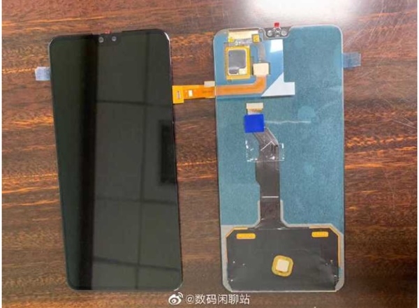 화웨이 메이트 30의 전면 패널,카메라, 디스플레이 내장형 지문센서 모듈이 고스란히 드러난다. 사진은 메이트30 노치는 프리미엄폰 메이트30 프로 노치보다 더 작아질 것임을 보여준다.