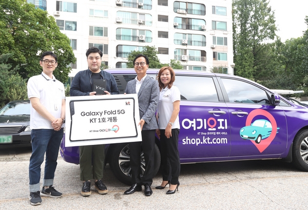 KT는 이날 오전 '여기오지' 서비스를 통해 개통 1호 가입자 이우성(서울 서초구)씨를 직접 찾아가 단말을 전달하고 개통을 도왔다.