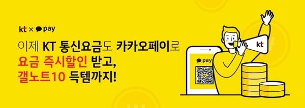 한편 KT는 이달 말까지 카카오페이머니로 KT 통신요금을 최소 1만원 이상 납부하는 고객들을 대상으로 1000원 즉시 할인 이벤트를 진행한다. 아울러 카카오페이 머니로 통신요금을 납부한 고객들 중 추첨을 통해 갤럭시노트10, 에어팟2, 카카오 미니 공기청정기, 스타벅스 기프티쇼 등을 제공한다.