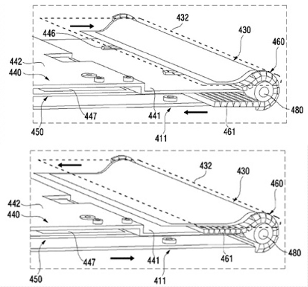 얼마 전 삼성은 롤업 디스플레이가 달린 조개껍데기폰도 특허를 냈다. 그러나 이번에 특허출원한 단말기는 훨씬 더 정교해 보이고 유명한 갤럭시S 시리즈에도 잘 어울릴 것으로 보인다.