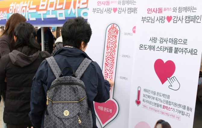 이미지 확대보기'인사돌플러스'로 구강 건강관리를 돕는 동국제약은 국민의 구강케어를 위해 다양한 활동을 전개하고 있다. 홀로 사는 노인의 구강관리를 위해 '효 박스(구강용품)'를 전달하는 '인사돌플러스 부모님 사랑감사 캠페인'이 대표적이다.