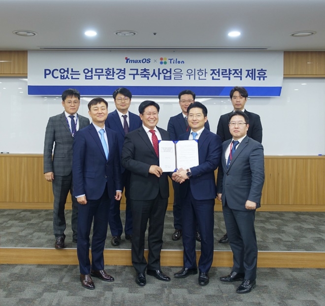 이미지 확대보기운영체제 및 클라우드 전문 기업 티맥스오에스(대표 박학래, 한상욱)는 가상화 기반 클라우드 솔루션 전문 기업 틸론(대표 최백준, 최용호)과 전략적 제휴를 체결하고, 티맥스오에스의 PC용 운영체제 ‘티맥스OS(TmaxOS)’와 틸론의 클라우드 PC 어플라이언스 ‘제로플렉스(ZeroPlex)’를 결합한 '제로클라이언트'를 출시할 예정이라고 20일 밝혔다.