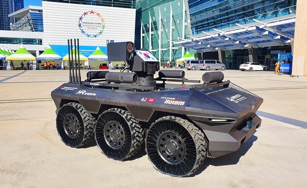 이날 시연에서 차량은 근거리 조종 원격주행을 통해 경비 임무를 수행하는 모습을 선보였다. 또 별도의 통제 차량을 통한 원거리 원격주행, 차량 앞 경호요원을 인식해 자동으로 따라가는 종속 주행, 지정된 경로를 스스로 탐색해 순찰하는 자율주행 등 다양한 기능도 시연했다.