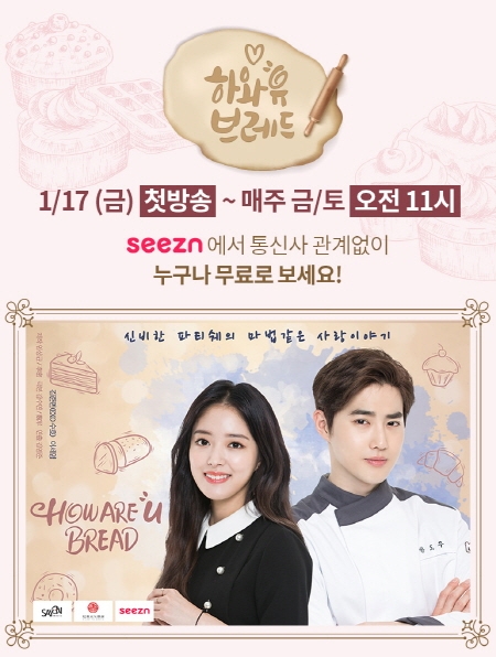 이미지 확대보기하와유브레드는 KT와 세이온미디어가 함께 제작한 10부작 드라마로 17일 최초 공개되며 매주 금요일과 토요일 오전 11시 시즌에서 가장 먼저 만나볼 수 있다. 글로벌 K-POP 그룹 엑소(EXO) 소속의 김준면(수호)과 대세 배우 이세영이 주연을 맡아 첫 방송 전부터 많은 팬들을 설레게 하고 있다. 까칠한 성격이지만 매력적인 외모의 인기 파티셰와 그를 섭외하기 위해 접근하는 방송작가 사이에 벌어지는 로맨틱한 사랑 이야기를 그린다.