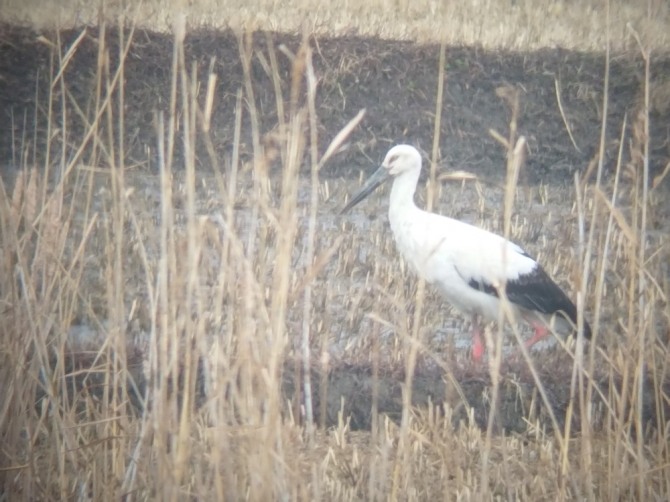설 연휴 동안 내린 비로 흑두루미 희망농업단지 곳곳에 물을 가득 채운 듯한 무논이 자연스럽게 형성됐으며, 황새는 그 주변에서 흑두루미, 큰고니와 어울려 먹이활동을 하고 있다.