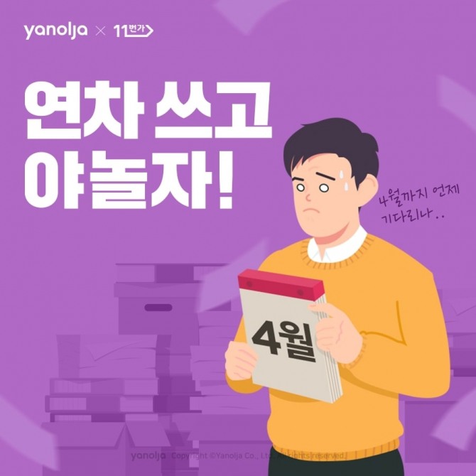 신성철 야놀자 사업개발실장은 "공휴일이 없는 2월과 3월 동안 연차를 이용해 여가를 계획하는 직장인들이 부담 없이 여가를 즐길 수 있도록 11번가와 함께 기획전을 마련했다"며 "앞으로도 국내외 주요 파트너사와 함께 누구나 마음 편히 여행을 갈 수 있는 프로모션을 꾸준히 준비하겠다"고 말했다.